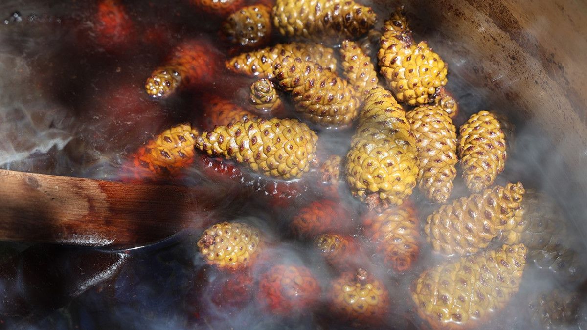 Bebek kozalaklarını toplayıp bir gün suda beklettiklerini ve ardından odun ateşinde 7 saat kaynattıklarını ifade eden Bahçeci, "Bugün Elazığ’ın Yedigöze Köyü’nde kozalak şurubu kaynatıyoruz. İki çocuk annesiyim. 7 yıldır bu işle uğraşıyorum. Doğal ürünler yapıyorum. 50 çeşit sabunumuz var. Birçok doğal ürün yapıyorum. Bugün burada doğal ürünlerimizden olan kozalak şurubu yapıyorum. Bebek kozalaklarımızı topluyoruz. Bir gün boyunca suda bekletiyoruz. Beklettikten sonra odun ateşinde kazanda tam 7 saat bunu kaynatıyoruz. Kaynattıktan sonra içerisine ekstra şeker kullanmıyorum. Eğer şekerli isteyenler olursa içerisinde esmer şeker veya doğal bal var. Aşamalı bir şekilde kozalak şurubumuzu kaynatıyoruz. Kozalak şurubumuz astım, KOAH, öksürük tarzı rahatsızlıklarda etkilidir. Özellikle sigara kullananların bu kozalak şurubunu kullanması gerekiyor" dedi.