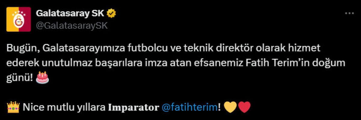 Öte yandan Galatasaray Kulübü de resmi hesabından Terim'in doğum gününü kutladı.