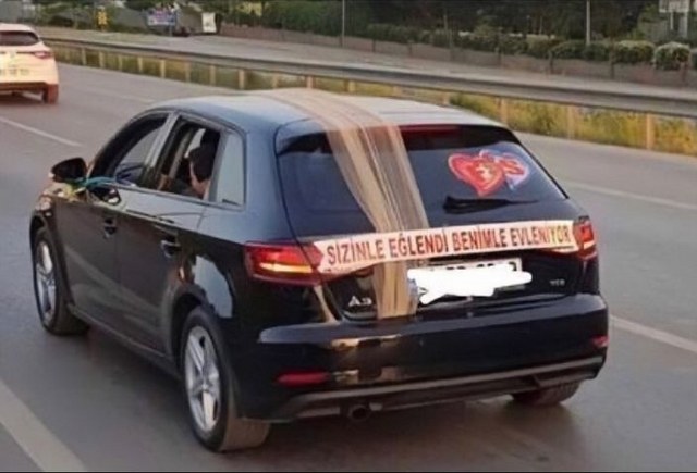 Gelin arabalarının üzerinde bazen birbirinden farklı yazılar görebilirsiniz.