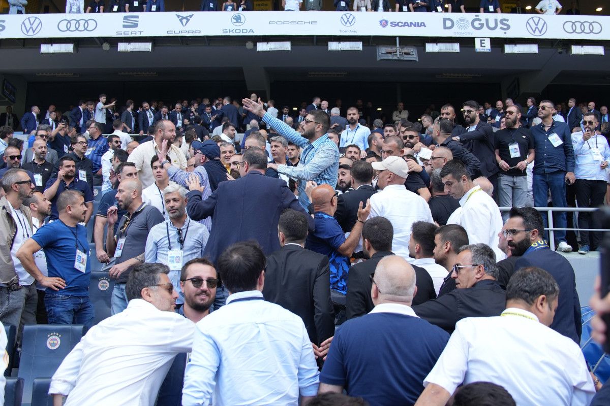 Daha sonra Mosturoğlu ve yönetim kurulu üyelerinden birkaç kişi kongre üyelerini sakinleştirmesiyle yeniden konuşmalara geçildi.
