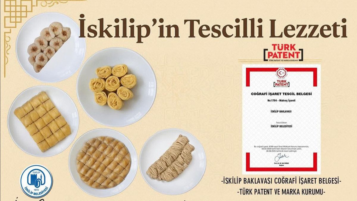 İskilip Belediyesi'nin daha önce İskilip dolması, turşusu, Ramazan keşkeği, çileği, tokmaklı kağnı, sirke salatası ve yırtma yemeği için coğrafi işaret aldığı hatırlatıldı. Baklavanın da tescillenmesiyle ilçedeki coğrafi işaretli ürün sayısı 8’e yükseldi.