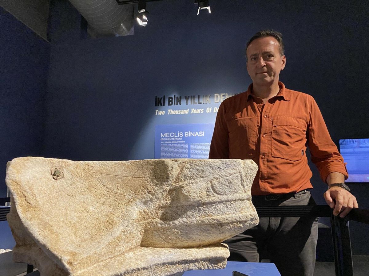 Halk meclisi binasında (Bouleuterion) yapılan kazılarda, tek parça halinde korunmuş bir güneş saati bulundu.