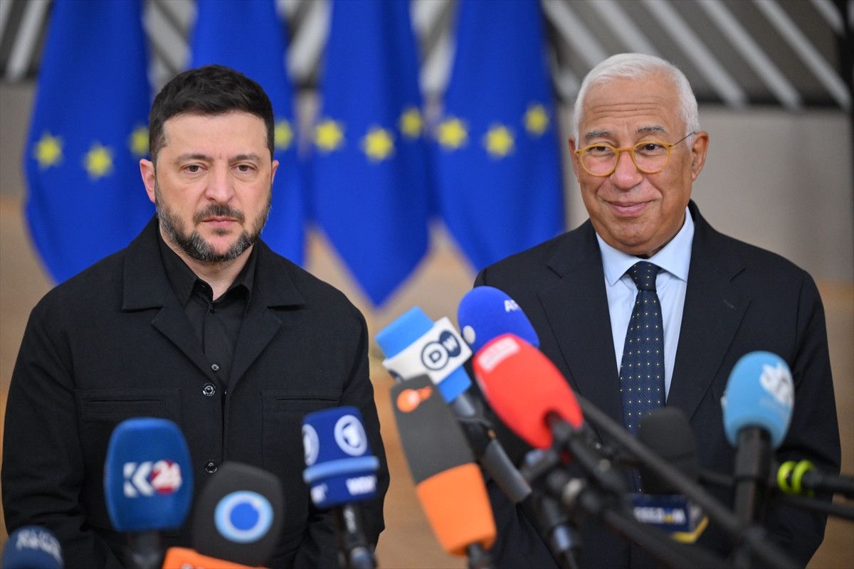 Avrupa Birliği (AB) Liderler Zirvesi'ne katılmak için Brüksel'e gelen Ukrayna Devlet Başkanı Vladimir Zelensky, AB Konseyi Başkanı Antonio Costa ile zirve öncesinde basın mensuplarına açıklamada bulundu.