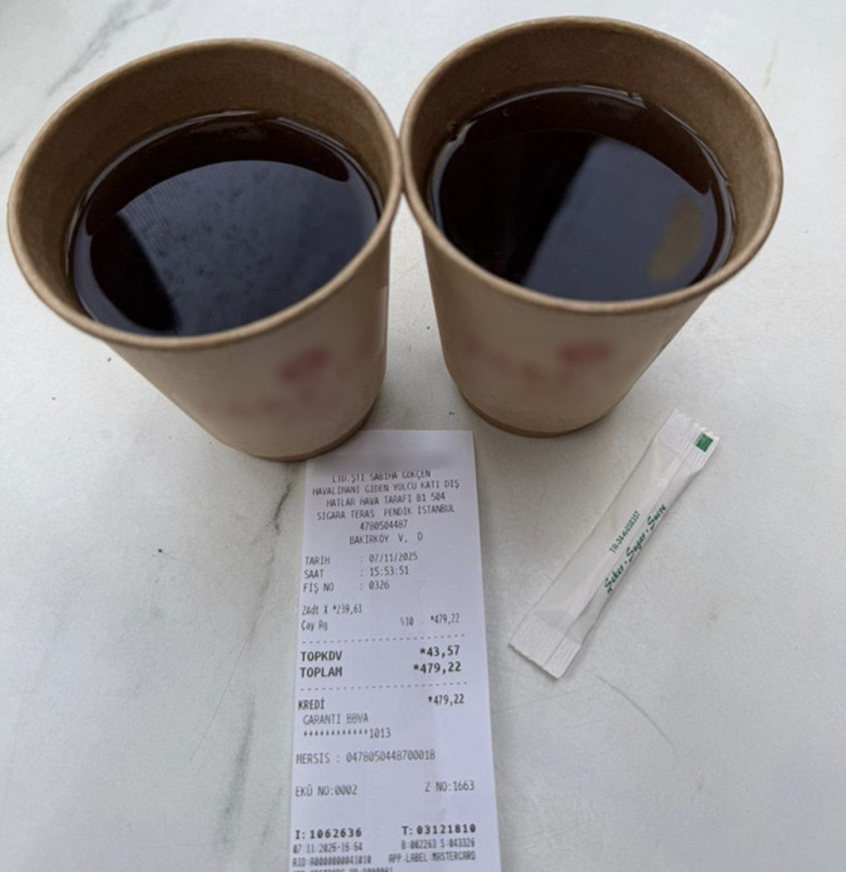 Havalimanında uçuş öncesi çay içmek isteyen iki vatandaş, ödedikleri fiyat karşısında büyük bir şok yaşadı.